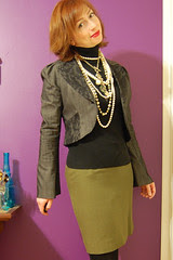 I must beg to differ about one thing, though. You may think that your demilitarized USMC skirt leans toward dowdy, but honestly, I can't imagine that skirt EVER being dowdy. Certainly that's due to your incredible (and way cool) fashion acumen; and I don't have to deal with styling it, as you do- but in all the times I've seen you in it, it has NEVER ONCE looked dowdy. I think it is undeniably a classic, has great lines (albeit with a retro vibe), and it looks absolutely great on you. Never sweat the dowdy thing, please!